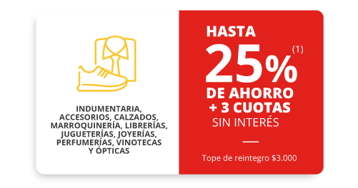 C.F.T. 0,00% (*) Válido para cartera de consumo. Vigencia: del 12/06/2023 al 17/06/2023 inclusive. Beneficios: (1) Hasta 25% de reintegro y (*) hasta 3 cuotas sin interés abonando con Tarjetas de Crédito Visa 4U, Internacional, Gold y Mastercard Internacional y Gold emitidas por el Banco de Entre Ríos SA. Tope de reintegro $3.000 por transacción. Ejemplo: usted podrá financiar una compra de $15.000 en 3 cuotas fijas sin interés de $5.000 c/u. Recibirá en la primera liquidación de su tarjeta un consumo de $5.000 y, en las dos liquidaciones siguientes, un consumo de $5.000 en cada una de estas. Reintegro: si abonó la compra con Tarjetas de Crédito Visa 4U, Internacional, Gold y Mastercard Internacional y Gold emitidas por el Banco: recibirá en la primera liquidación o en la siguiente un reintegro de $3.000 (tope de la promoción). (2) Hasta 10% de reintegro sólo en (*) 6 cuotas sin interés abonando con Tarjetas de Crédito Visa y Mastercard emitidas por el Banco de Entre Ríos SA. Tope de reintegro $5.000 por transacción. jemplo: usted podrá financiar una compra de $48.000 en 6 cuotas fijas sin interés de $8.000 c/u. Recibirá en la primera liquidación de su tarjeta un consumo de $8.000 y un reintegro de $5.000 (tope de la promoción) en el resumen en el cual ingrese el consumo o en el posterior. En la segunda y en la sexta liquidación recibirá un consumo de $8.000 en cada una de estas. Beneficios (1) y (2): (*) costo financiero total (C.F.T.): 0,00%; tasa efectiva anual (T.E.A.): 0,00%; tasa nominal anual (T.N.A.): 0,00%. Costo de financiación a cargo del Nuevo Banco de Entre Ríos SA. No válido para compras realizadas a través de plataforma única de pago en la cual no se individualice ni se identifique comercio ni rubro ni online, como ser Mercado Pago, QR y/o similares. Se excluyen las compras realizadas con una financiación bajo el Programa de Fomento al Consumo y a la Producción de Bienes y Servicios, denominado "AHORA 3". Nuevo Banco de Entre Ríos - CUIT 33-70799551-9 - Monte Caseros 128, Paraná, Entre Ríos.